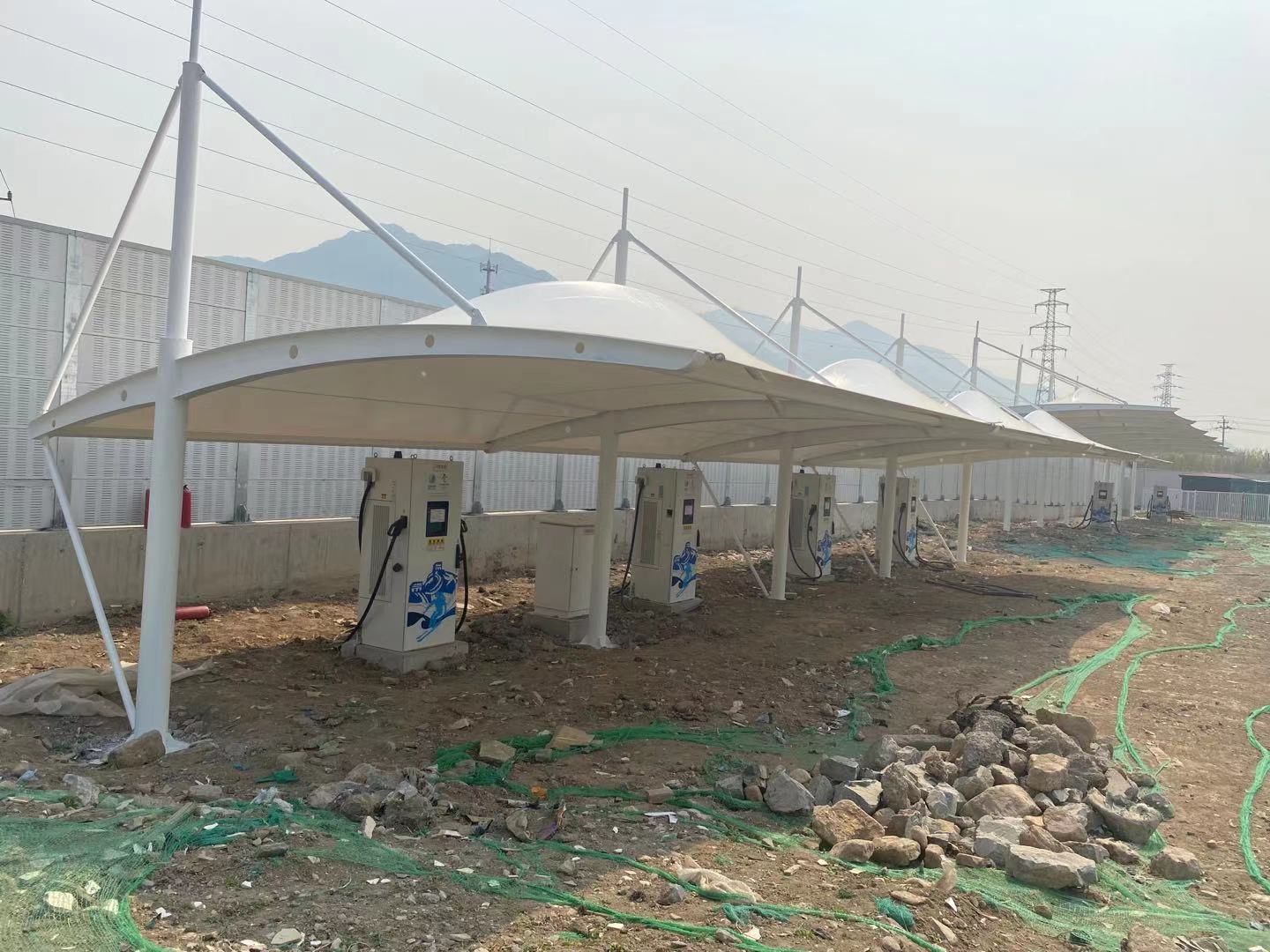 北京昌平區上店服務區進京方向充電樁膜結構雨棚充電站膜結構防雨棚